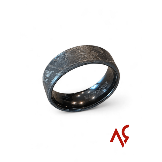 The Dominator | Men's Black Tungsten Carbide Wedding Band with Meteorite Inlay