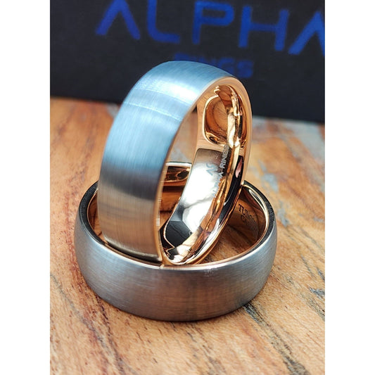The Vanguard | Men's Brushed Tungsten Carbide Ring Wedding Band with Rose Gold Stainless Sleeve